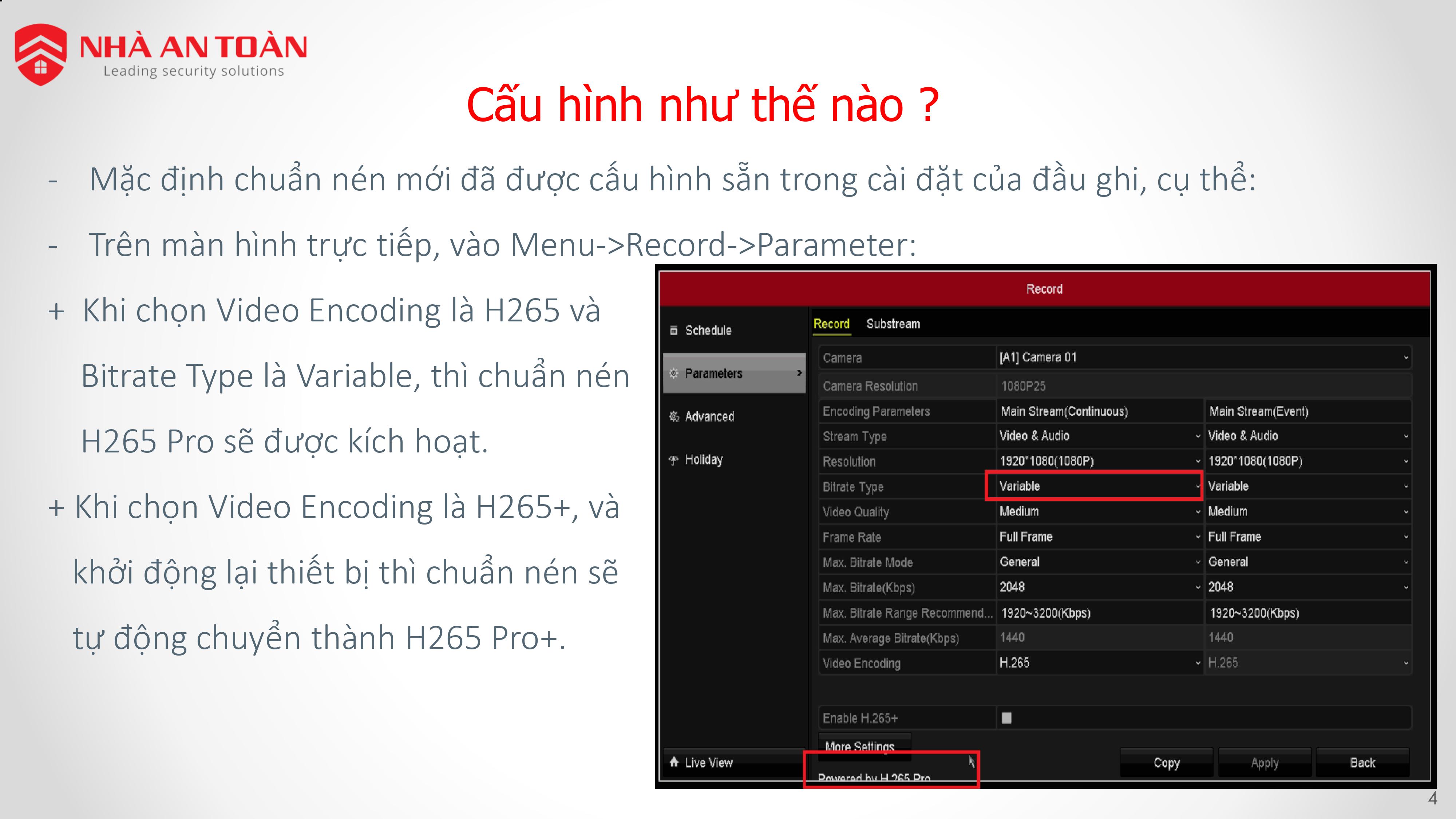 Giới thiệu và hướng dẫn cài đặt chuẩn nén H265Pro và H265Pro+