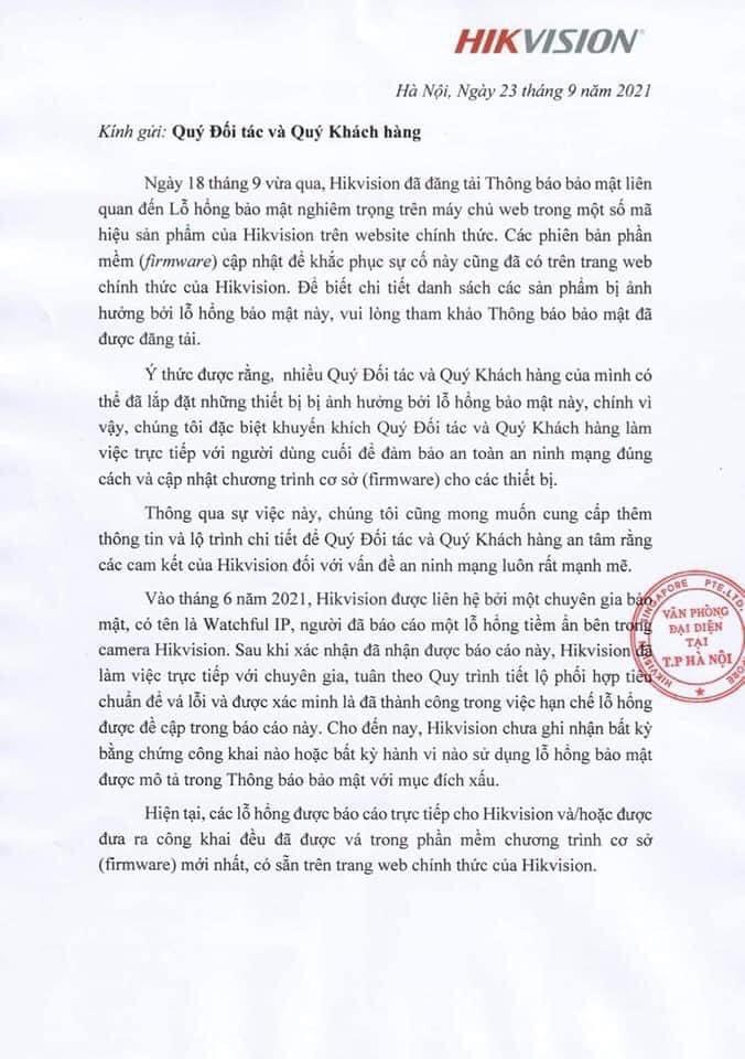 HIKVISION THÔNG BÁO VỀ VIỆC VÁ LỖI BẢO MẬT